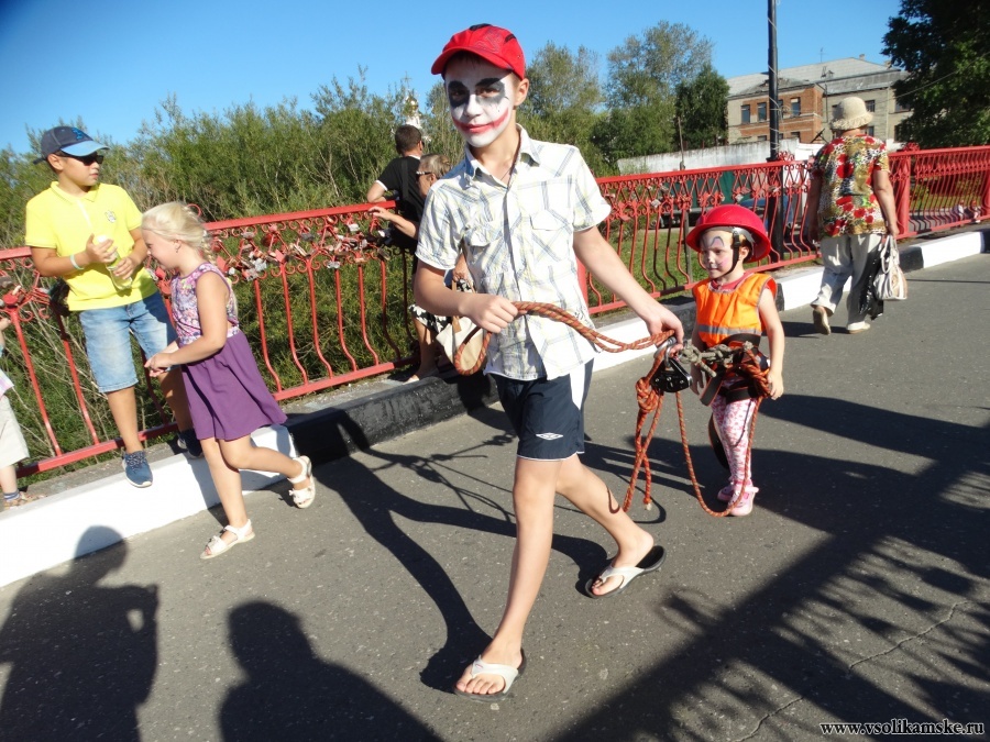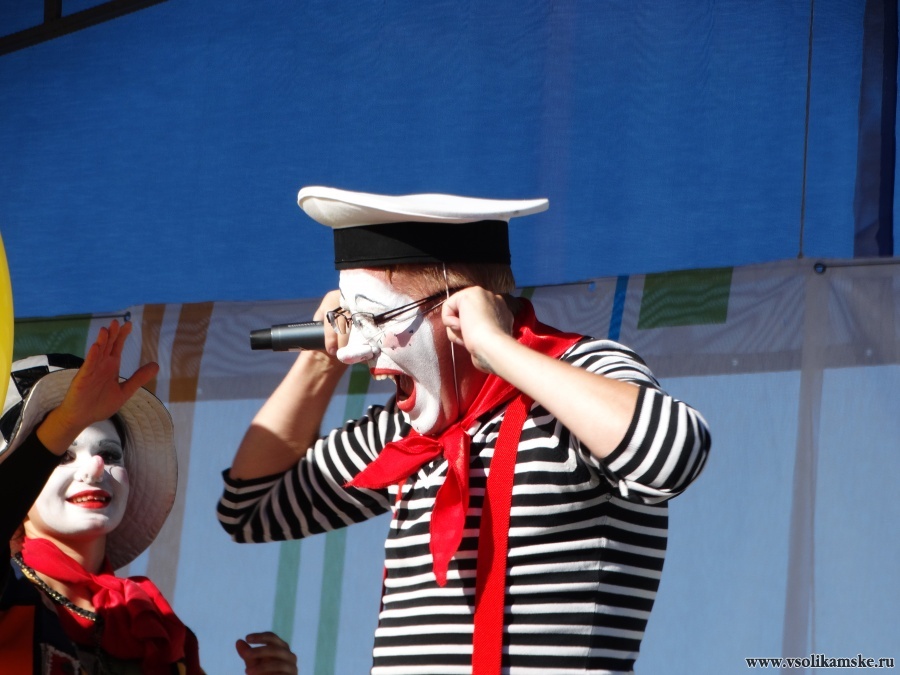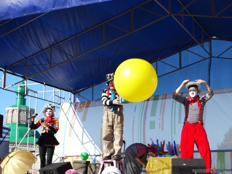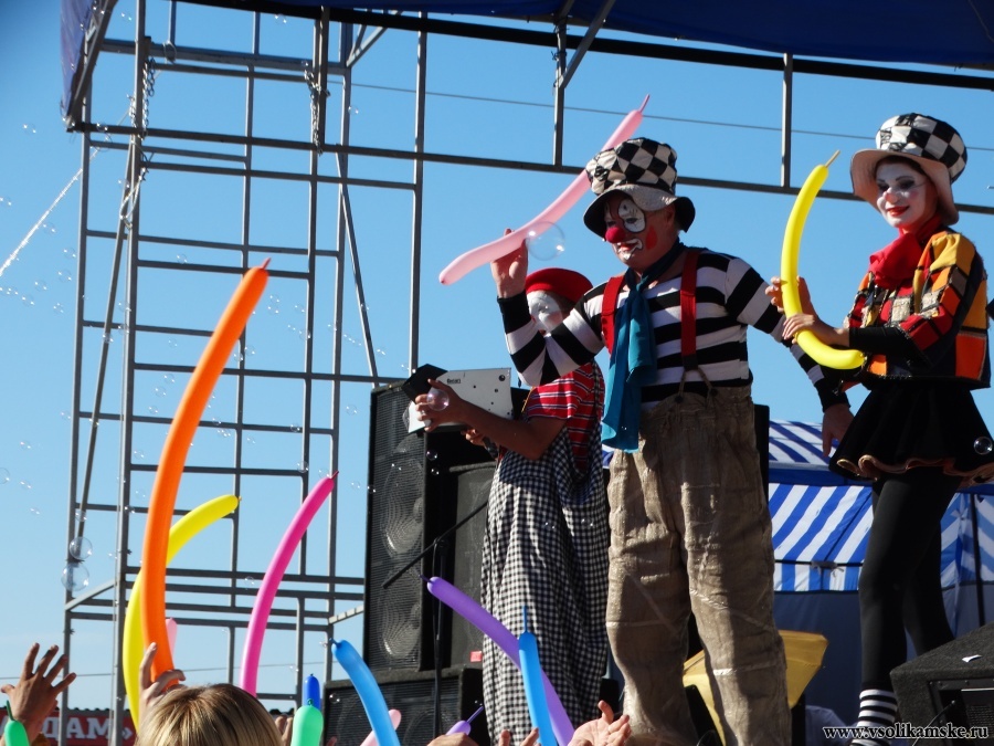 после выступления клоуны пошли в люди "обшаривать" тех, кому не достались надувные шары) а вместе с ними высокие люди)