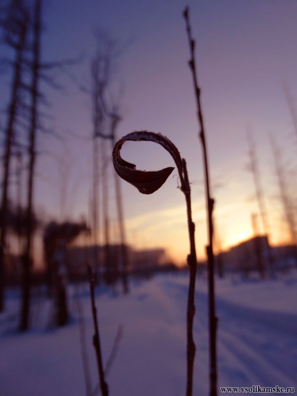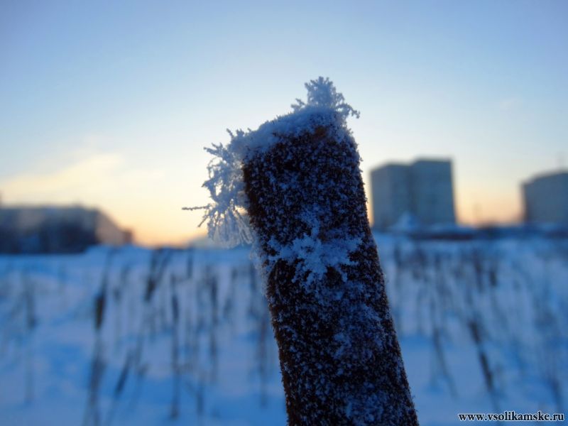 Изображение уменьшено. Щелкните, чтобы увидеть оригинал. и сказочные морозные паучки сбежались на макушку камыша, чтобы полюбоваться закатом