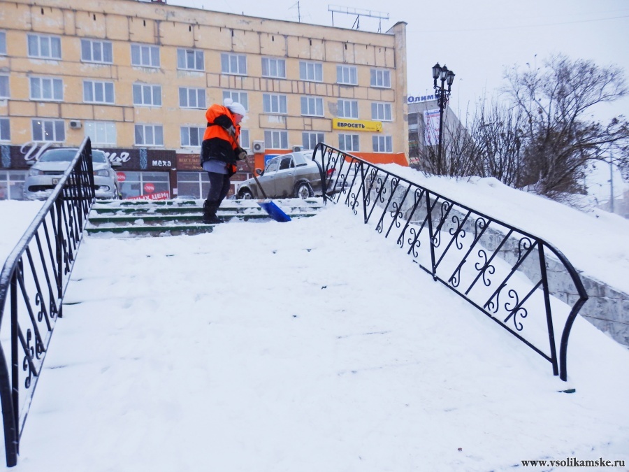 У меня собака испугалась даже… Как увидела вместо ступенек горку из снега, так и заупиралась всеми четырьмя лапами, домой потащила))) Работенки у дворников и служб благоустройства сегодня дай боже сколько! И ведь снег не прекращает сыпать… Ходила с утра по делам в центр. Удивило, как старательно машинки вычищают Демидовский сквер, что находится между администрацией и педколледжем.