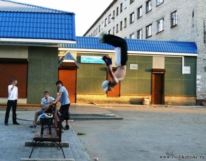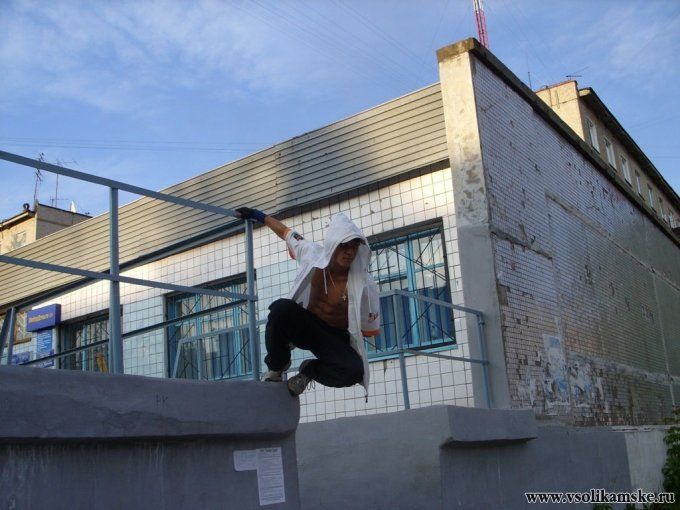 Изображение уменьшено. Щелкните, чтобы увидеть оригинал. По их словам, паркур — особое состояние души. Нельзя просто быть тренированным человеком и заниматься паркуром, если душа твоя к этому не лежит. "Паркур это не только самосовершенствование тела, но и духа… многие мысли приходят наедине с самим собой и без разницы бежишь ли ты или сидишь", — говорит Дмитрий, — "Никогда не надо бояться делать трюк большинство травм случается именно потому что человек боится и не умеет владеть своим телом". Парни занимаются паркуром уже больше шести лет, участвовали в региональных и всероссийских соревнованиях… хотя в принципе — это не соревновательный вид спорта, а просто философия жизни.