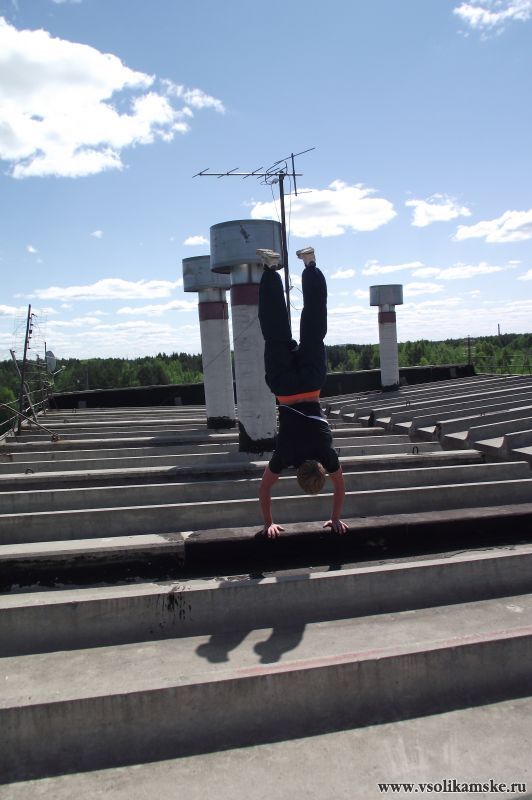 Воскресенье у меня получилось незабываемым… Пришлось по работе забраться на крышу одной из соликамских пятиэтажек. Писала материал про наших паркурщиков и когда они меня пригласили на встречу — предупредили о спортивном стиле одежды, но я выпендрилась и пришла в длинном платье, за что жестоко поплатилась… лезть по лестницам сначала на чердак. а потом на саму крышу было жутко неудобно((( Но все неудобства забылись, как только я оказалась на верху!!! А Дмитрий Трейсеров, Александр Мараков и Вадик Путин рассказали о своем стиле жизни — паркуре.