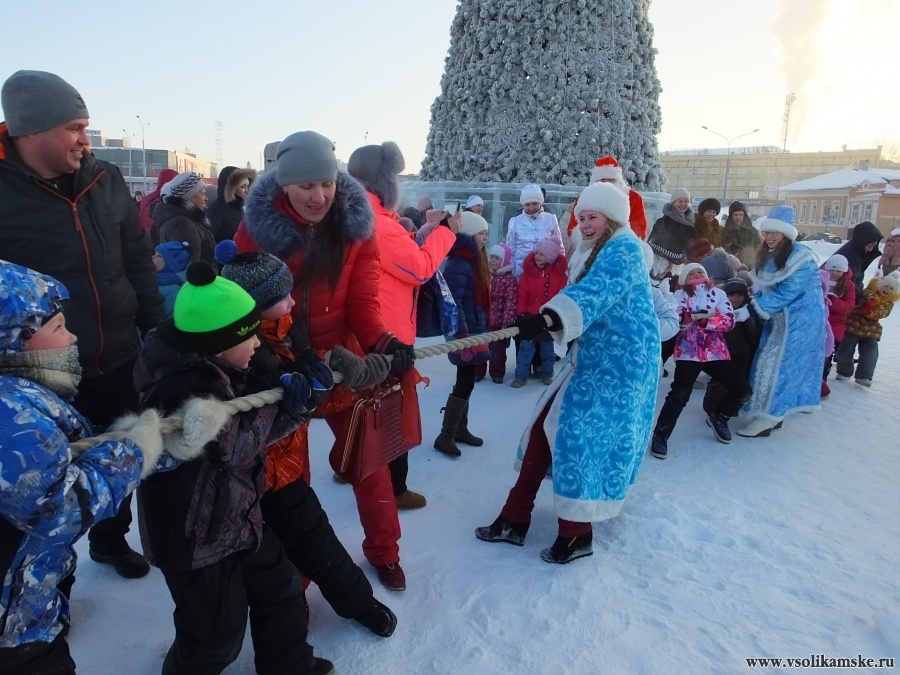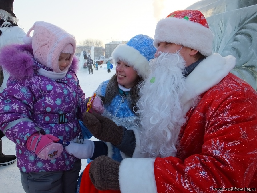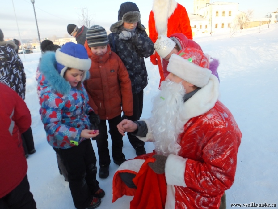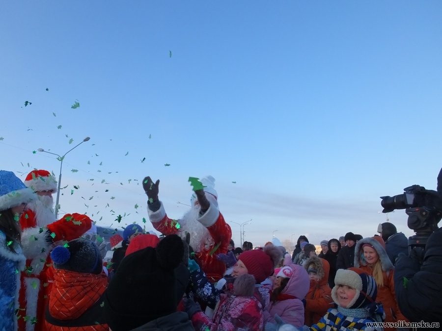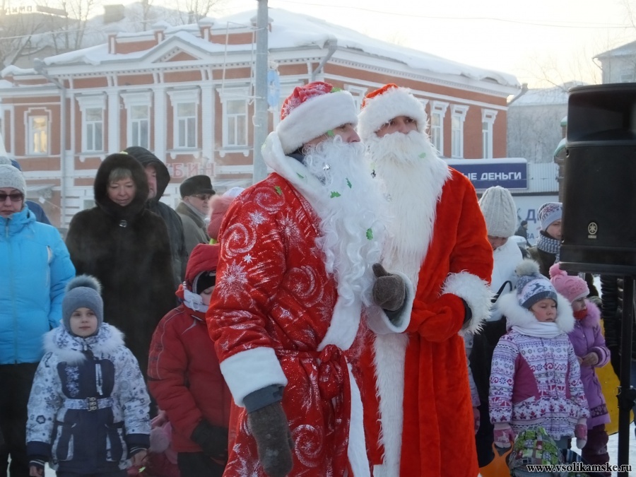 В этом году он был не такой многочисленный, видимо резкое похолодание поспособствовало. Но уменьшение количества Дед Морозов никак не сказалось на отличном настроении соликамцев, собравшихся у главной елки города.