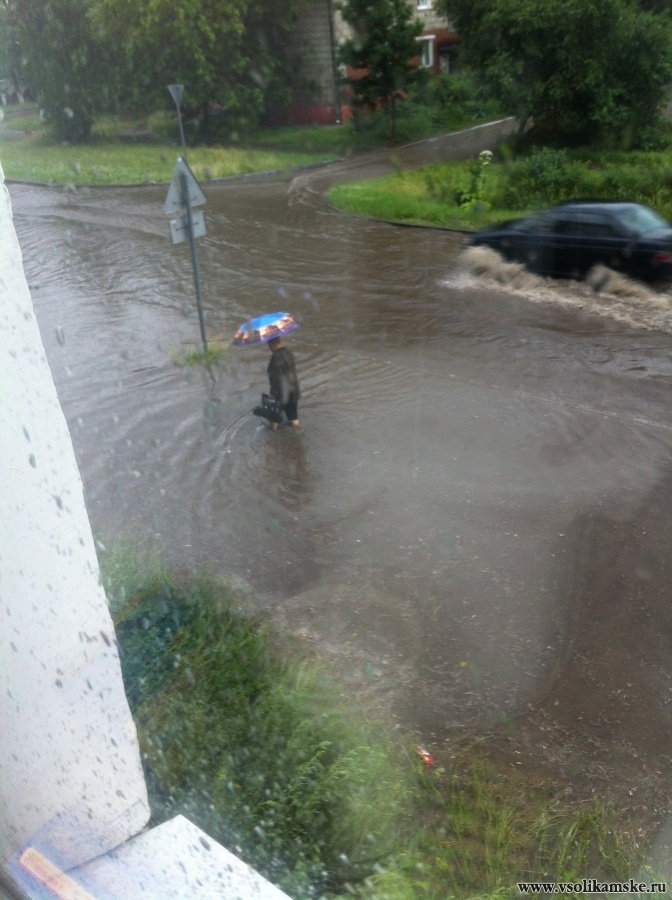 Стена дождя Съемки вела из окна, под дождь идти не хотелось и правильно, потому что он доставил массу неудобств горожанам. Вот, например, фото, из ВК от Мили Сайфутдиновой: девушка не обозначила улицу. но я так думаю. что это Большевистская. Вот видео от Олега Панова: vk.com/nashsolikamsk?w=wall-11207116_5430 Мне понравилась фраза: "пацаны, плавайте!" Водостоки и сливы в районе остановки "минимаркет" по вышеуказанной Большевистской как не работали, так и не работают. И такой потоп на этой улице повторяется из раза в раз! На Степана Разина, в районе 48 садика ситуация получше: воды много, но не критично , если машин рассекающих водные глади нет, пешеходам — хорошо А во дворе по Северной вообще всё хорошо! Зато представляю какие потоки воды бегут во время ливня по третьему району, где горка на горке… Интересно. что соликамцы активно описывают все происходящее: только начался сильный дождь, как в соцсетях тут же начали появляться "мокрые" фотографии. Всем добра и отличного продолжения лета!