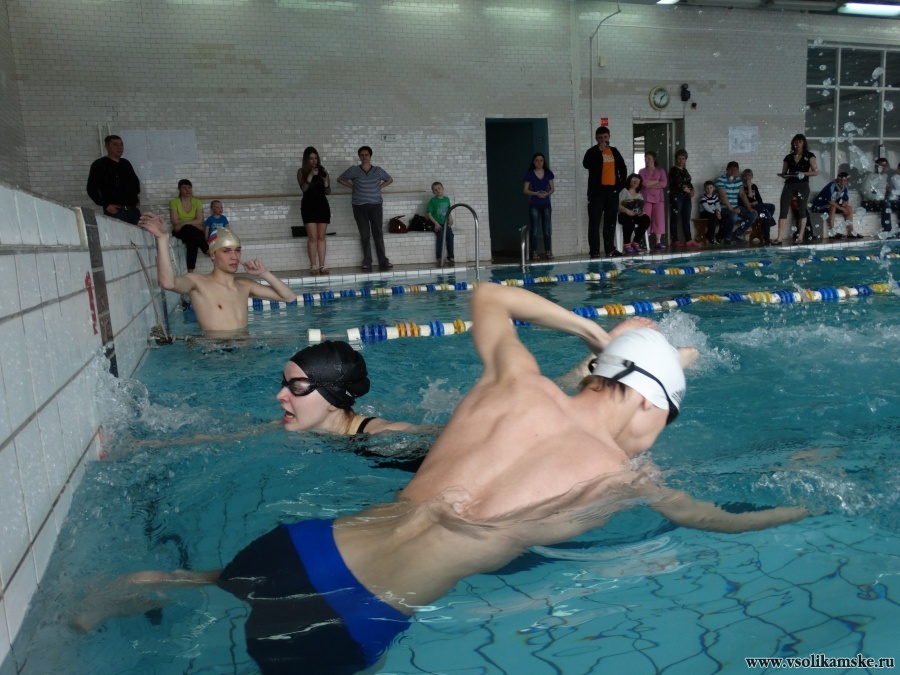 Сегодня в бассейне "Здоровье" прошли соревнования по плаванию. "Детские" — первенство, посвященное годовщине Победы в Великой отечественной войне и первенство города среди ветеранов. На детских соревнованиях состязались ребята из Соликамска и Красновишерска в возрасте от 7 лет и старше. Битва была жаркой!!! После личного зачета прошла комбинированная эстафета (на спине, брасс, дельфин. кролль), в которой бились за первое место две команды — ВОСВОД (Соликамск) и Вишера (Красновишерск). ВОСВОД пришел первым.