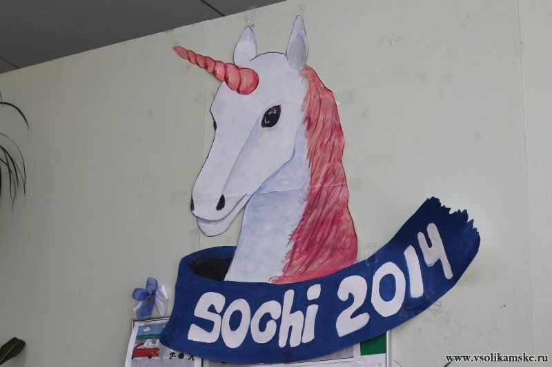 А это в гимназии "болели" за наших… вот только единорог как с Сочи связан?