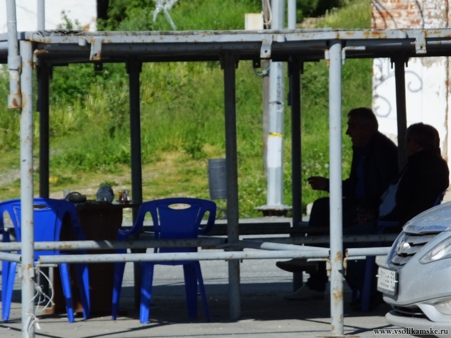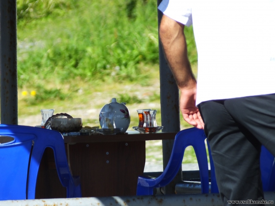 Жизнь в центре города кипит. Кипит — потому что жарко? Посетители кафе используют любую возможность, чтобы оказаться в тени. Сцена — неплохое укрытие. Можно спокойно попить чай.