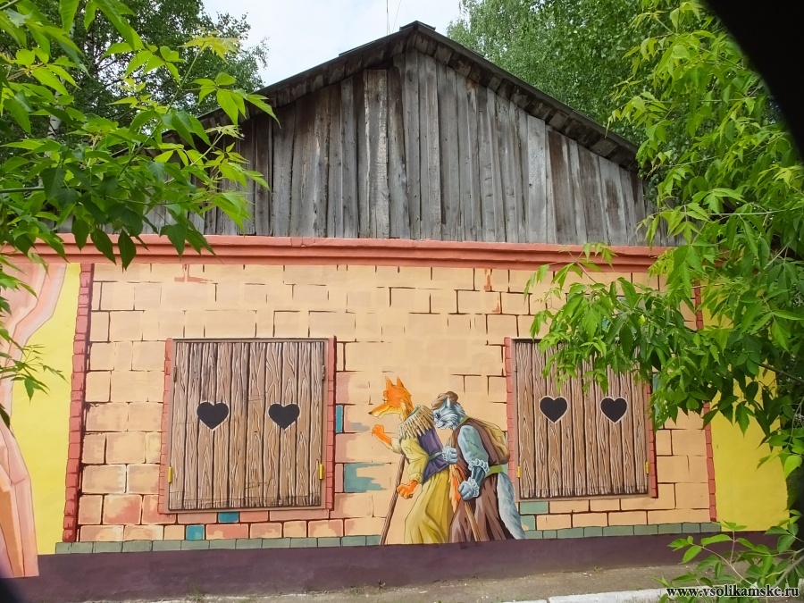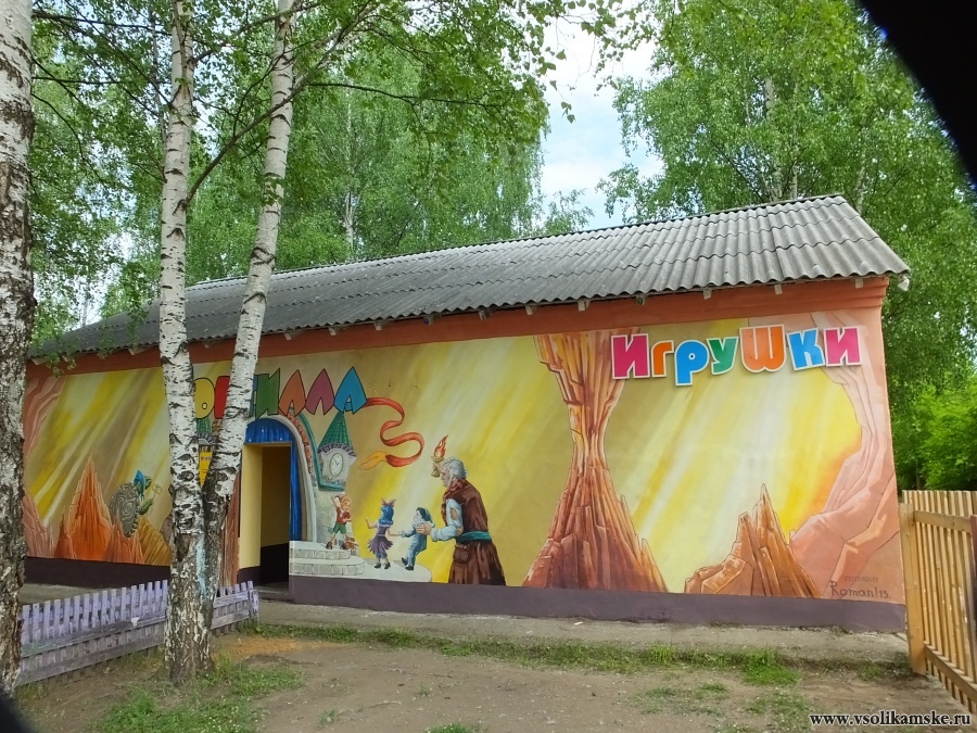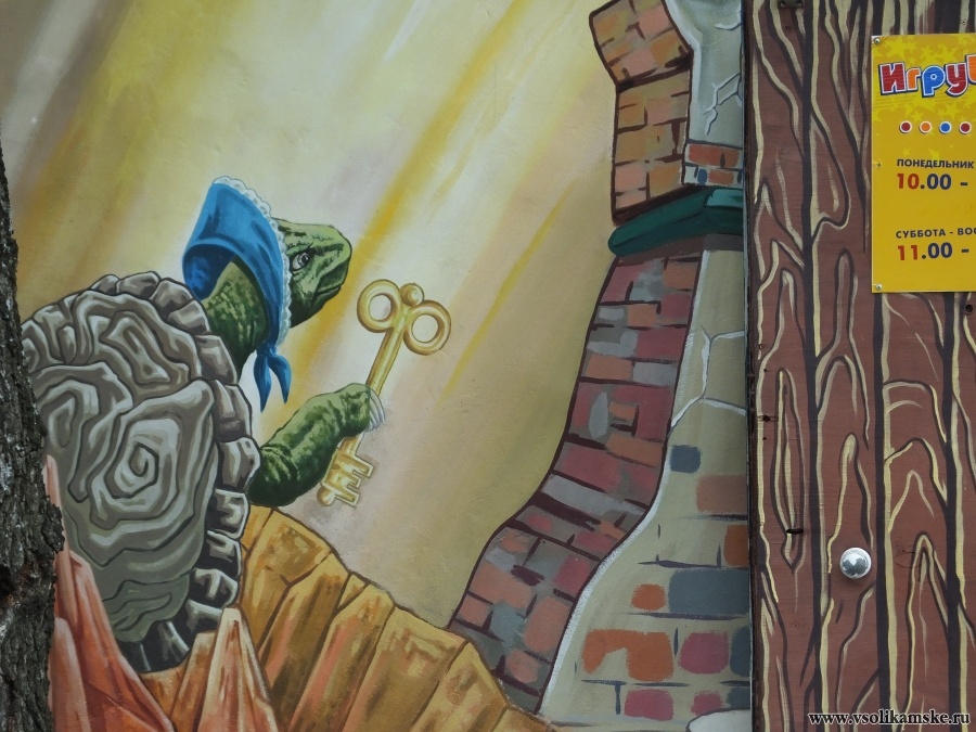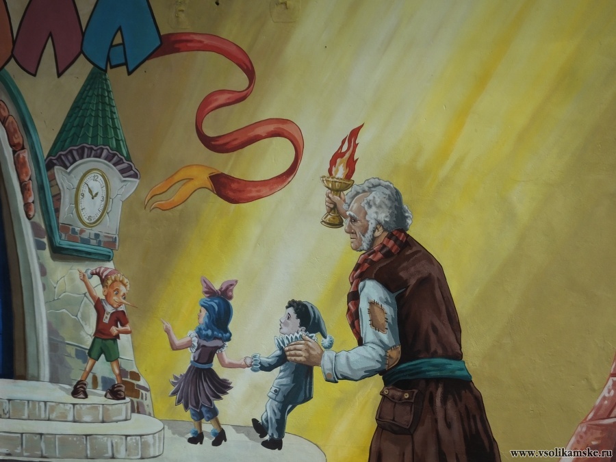 Сказка о приключениях Буратино — очень популярна. В Боровске задолго до фестиваля деревянных скульптур начали разрисовывать магазин. И вот он готов. Художник — Роман Мальцев.