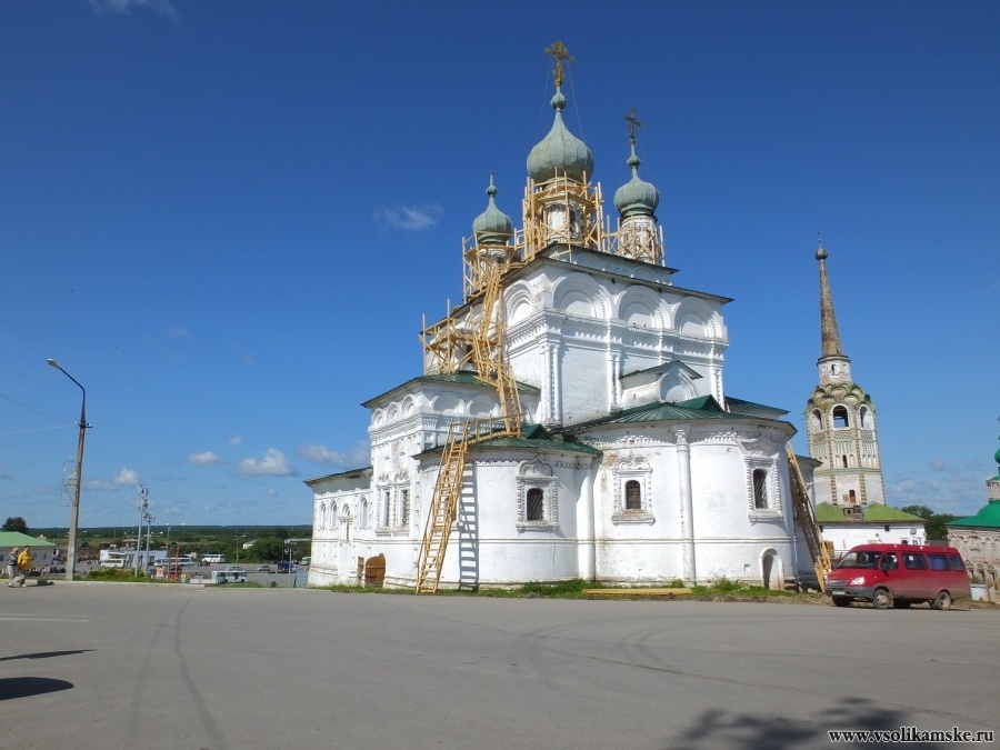 Продолжается реставрация Троицкого собора: весь в строительных лесах он выглядит еще более монументально