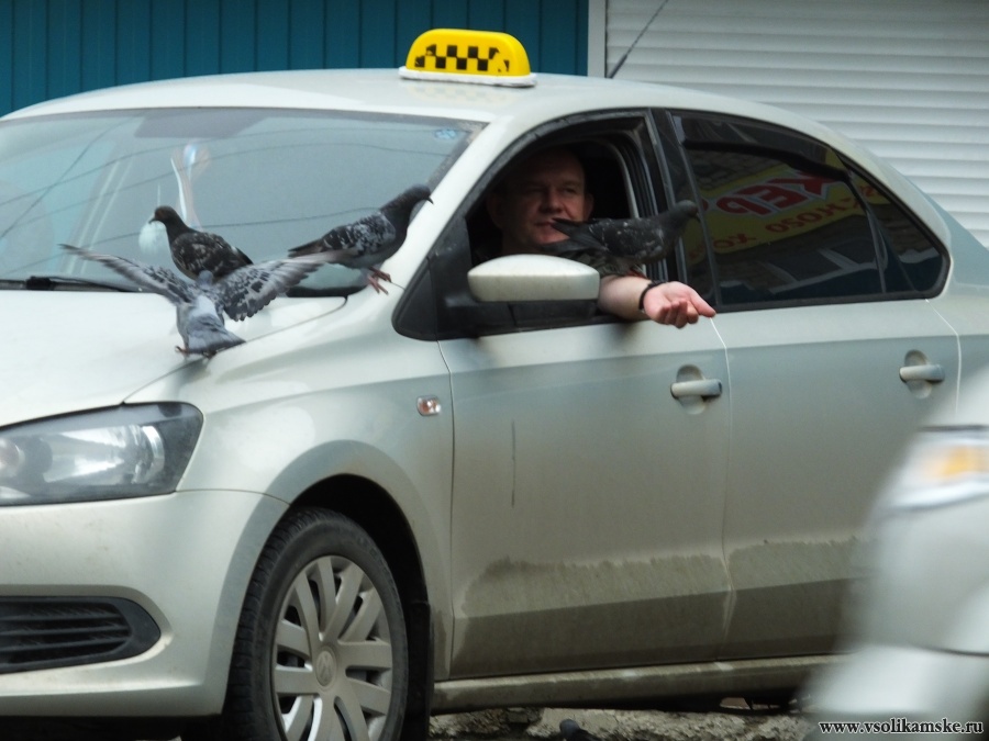Подсмотрела, пока ждала автобус. Таксист в ожидании пассажиров прикармливал голубей. Когда птица садилась ему на руку, кормил семечками прямо в клюв)))