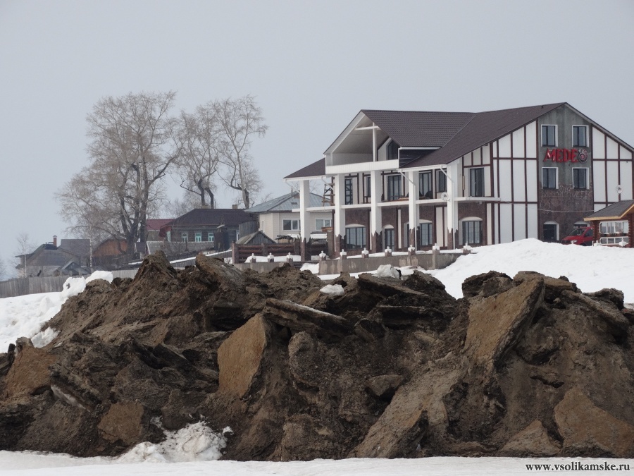 С 13 марта реке Каме в районе пляжа в Боровой углубляли дно. Чистили несколько дней, глубина выемки ила (и мусора, конечно же) 1,5 метра. Проводили работы сейчас именно потому что воды нет, очень удобно. Сходила сфотографировала общий вид, когда работы были завершены.