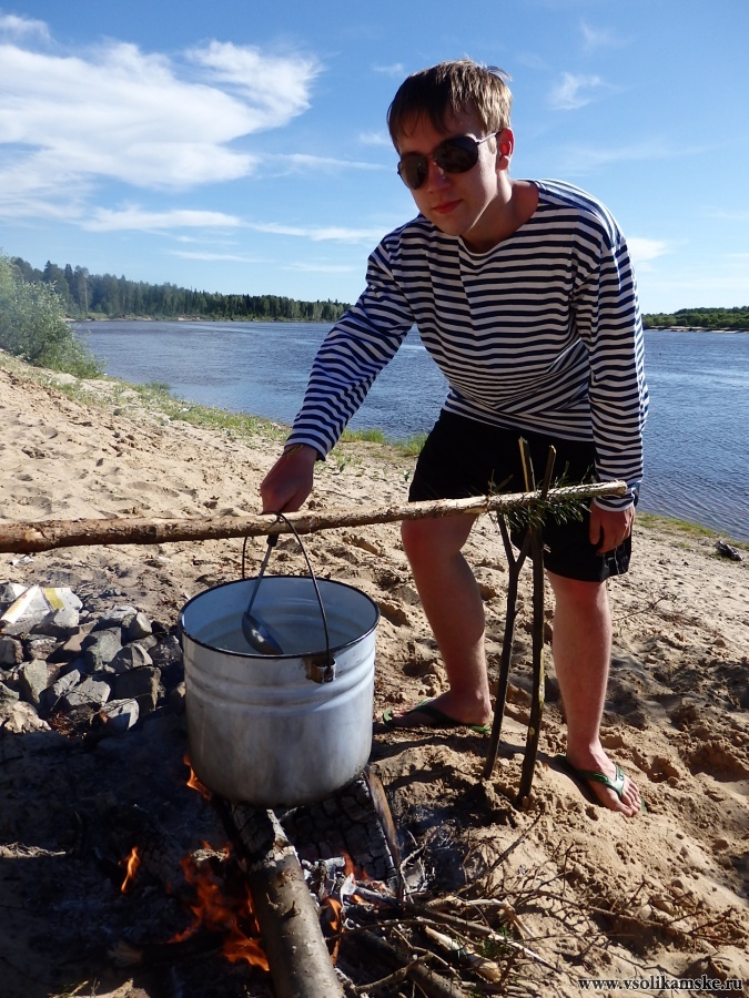 Видно было, что сын уже устал, поэтому меня быстро на авто довезли до Старицы и с 48 км забрали сына с великом. Мой муж решил проехать все 70 км до конца… В пункт икс добрался в начале второго)) Из Березовой Старицы направились к Вишере. Выбрали себе местечко на песчаном берегу, поставили палатку, разожгли костер…
