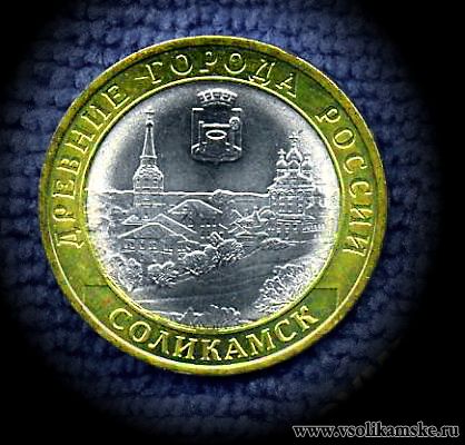 Юбилейная памятная монета серии «Древние города России» номиналом 10 рублей – «Соликамск» выпущена Банком России 1 марта 2011 года.