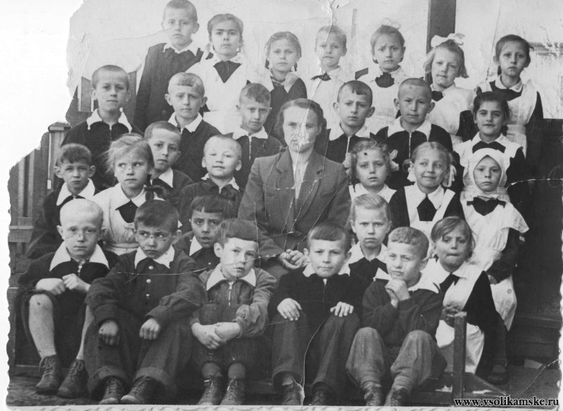 Изображение уменьшено. Щелкните, чтобы увидеть оригинал. Но маменким сыночком я пробыл недолго.На нашей улице было много моих сверстников, с которыми. мне было намного интересней.Машины на нашей улице почти не ездили и она была для нас игровой площадкой, хотя играя в лапту приходилось прихватывать и соседнею Комсомольскую улицу.Игры так захватывали, что и поесть даже было некогда и в качестве подножного корма использовали плиточный фруктовый чай, который грызли тут же на улице.Иногда пошаливали и мишенями для наших рогаток служили лампочки на столбах.Делали также стукалки в окна из булавок и катушки ниток.Закрепив булавку с камышком на оконной раме, спрятавшись подальше и дергая за нитку стучали в окно.Игры с возрастом менялись.Играли в чику, и спрятавшись в беседке детсаду играли в карты на пуговицы в то время популярную триньку. Начальное образование я получал в школе-бараке, которая находилась в районе Берлина.Ходить приходилась мимо сараев и дорогу перебегали крысы.Но с Джеком, который привязался еще щенком, мне было не страшно.С собой надо было носить чернильницы и хоть назывались непроливайками, иногда после некоторых манипуляций, оставляли на тетрадках большие кляксы.Не знаю как справлялась наша учительница с таким количеством учеников.Смотрел недавно на сайте образования.Сейчас норма не больше 20, а нас тогда было 28.Да и помещение в котором класс располагался не сравнить
