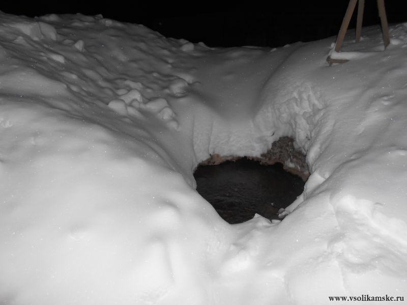 На звонки жителей улицы, диспетчер водоканала, твердила, что лопнула труба на вводе в дом. В итоге, аварийка водоканала прибыла на место ЧП только в 9 утра, позже начались работы по устранению течи и ликвидации аварии. Итог аварии, затопленные подвалы (воды было около 40-50 см.), лед на тротуаре, затопленные посадки в огороде.