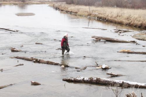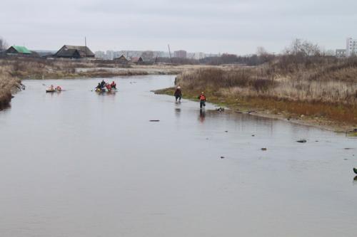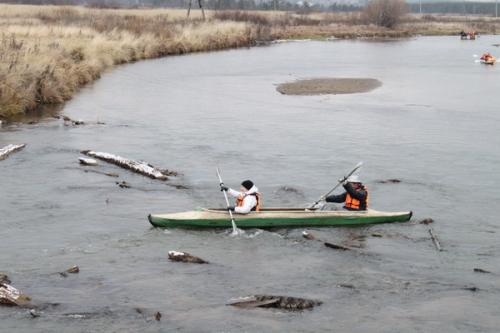 По пути ниже Ботанического сада возникли трудности при прохождении русла Усолки по причине мелкой воды(примерно года назад люди с техникой пытались углублять русло реки… для чего-то). Пришлось тыкаться между низко висящими проводами и торчащими бревнами бывшей плотины. Трудности были пройдены практически без проблем.