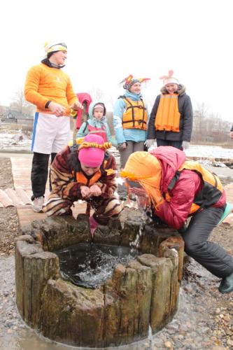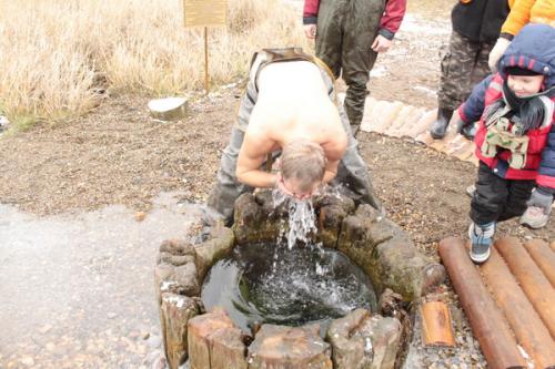 Все экипажи остановились около Людмилинской скважины. Каждый умыл лицо, а некоторые участники ополоснулись по пояс водой из скважины.