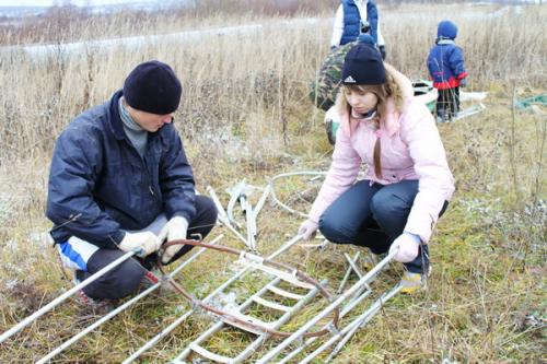 Далее через мелкую Усолку, иногда пешком, иногда между железом и бревнами, путь следовал к финишу, а, если быть точным, то до Моста влюбленных, где туристов встречала горячая походная каша.