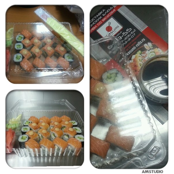 Экономьте время и деньги с Sushi bar «Kasumi»! Мы просто необходимы, когда загруженность в офисе просто зашкаливает, когда пришли неожиданные гости или вам просто захотелось вкусненького. С нами вы можете быть уверены в недорогом, быстром и качественном обслуживании, а так же, в неизменно богатом меню.