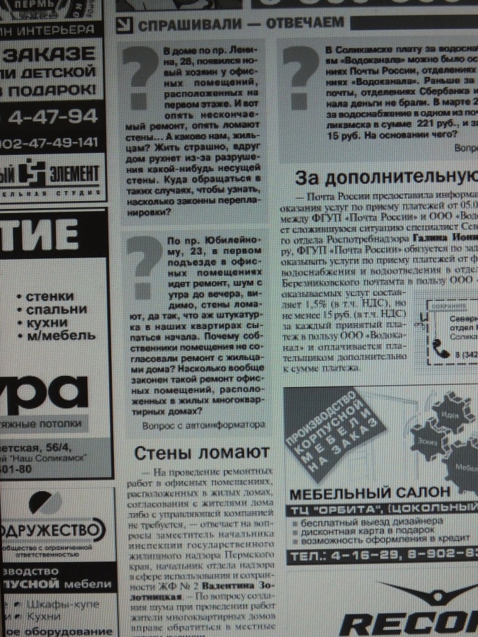 Обо всех фактах переустройства, перепланировки помещений, перевода жилых помещений в нежилые, вызывающие у Вас сомнения относительно законности их проведения, Вы можете сообщить в Соликамскую городскую прокуратуру, позвонив по телефону: 5-31-16, 5-23-64.