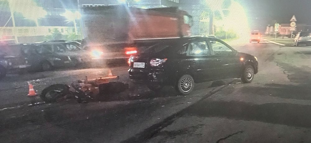 29 мая 2021 в 23:55 на проезжей части по ул. Мира, двигался автомобиль марки «LADA-219110», под управлением водителя 1982 г/р., который в нарушении п.п. 8.4 ПДД РФ (при перестроении водитель должен уступить дорогу транспортным средствам, движущимся попутно без изменения направления движения) при выезде на главную дорогу с прилегающей территории не предоставил преимущество в движении мотоциклу марки «ИЖ-7108», под управлением водителя 1986 г.р.