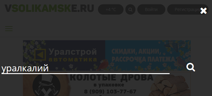 Укажите в нем нужный запрос. Например, найдем всю информацию на сайте, связанную с компанией Уралкалий. Напишем в поле ввода уралкалий и нажмем по кнопке лупы или клавишу Enter.