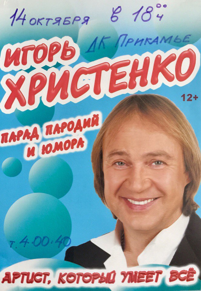 14 октября в 18:00 в ДК Прикамье Игорь Христенко представит программу «Парад пародий и юмора».