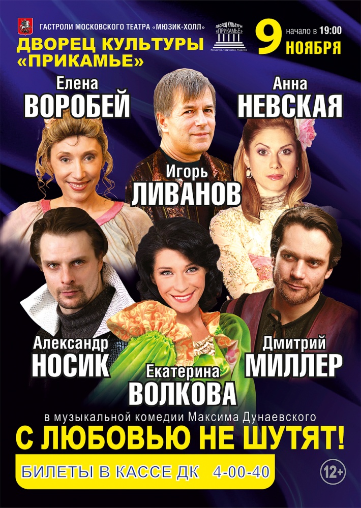 9 ноября в ДК Прикамье гастроли московского театра «МЮЗИК-ХОЛЛ» с комедией Максима Дунаевского «С любовью не шутят».