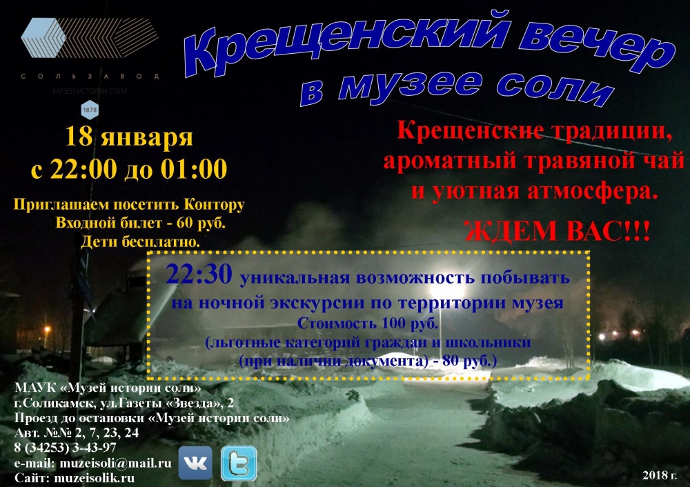 18 января Музей соли вновь приглашает жителей и гостей города провести Крещенский вечер в Музее соли!