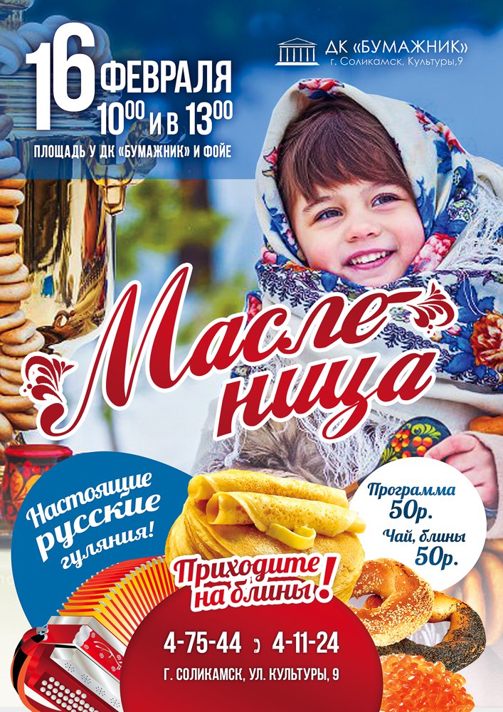16 февраля на площади у ДК Бумажник пройдет празднование Масленицы.