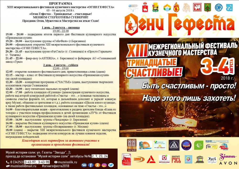 В 2018 году фестиваль «Огни Гефеста» пройдёт в тринадцатый раз под общим девизом «Тринадцатые – счастливые!»