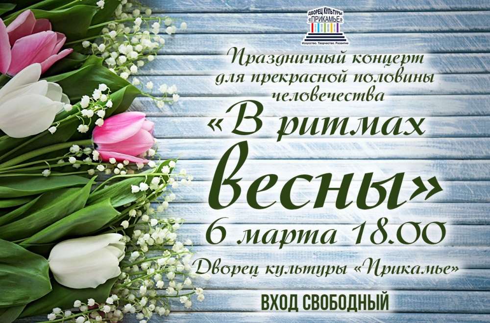 6 марта в ДК Прикамье пройдет концерт «В ритмах весны», посвященный главному женскому празднику 8 марта.
