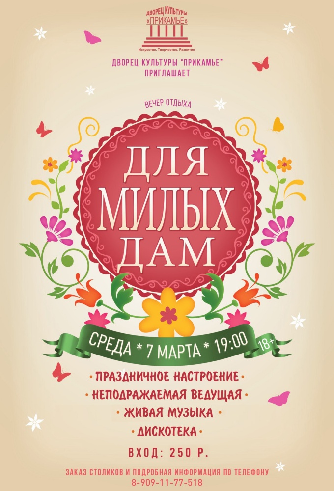 7 марта ДК Прикамье приглашает на вечер отдыха для взрослых.