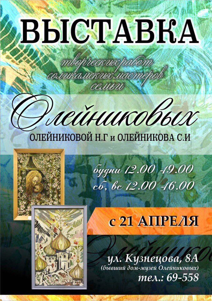 С 21 апреля в Соликамске начнется выставка творческих работ соликамских мастеров Олейниковых.