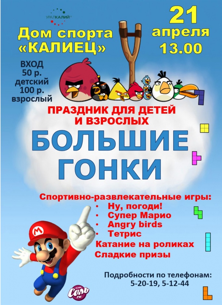 21 апреля в Доме спорта Калиец пройдет праздник для детей и взрослых «Большие гонки».