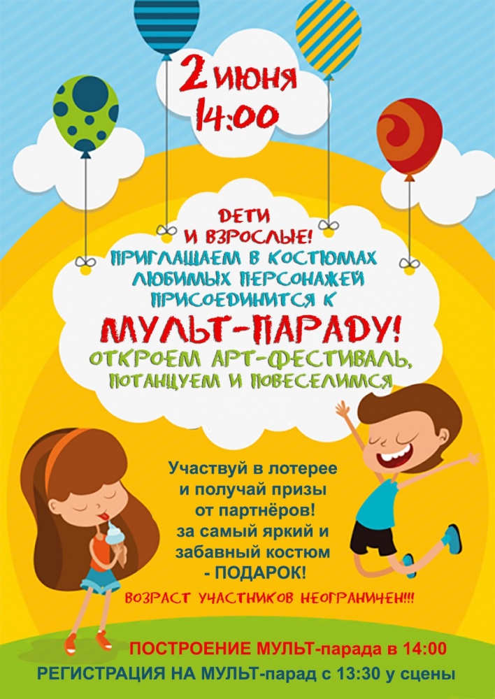 МУЛЬТ-парад будет открывать АРТ-фестиваль детства и молодежи! Если вы хотите стать частью красочного шествия, то вам нужно: