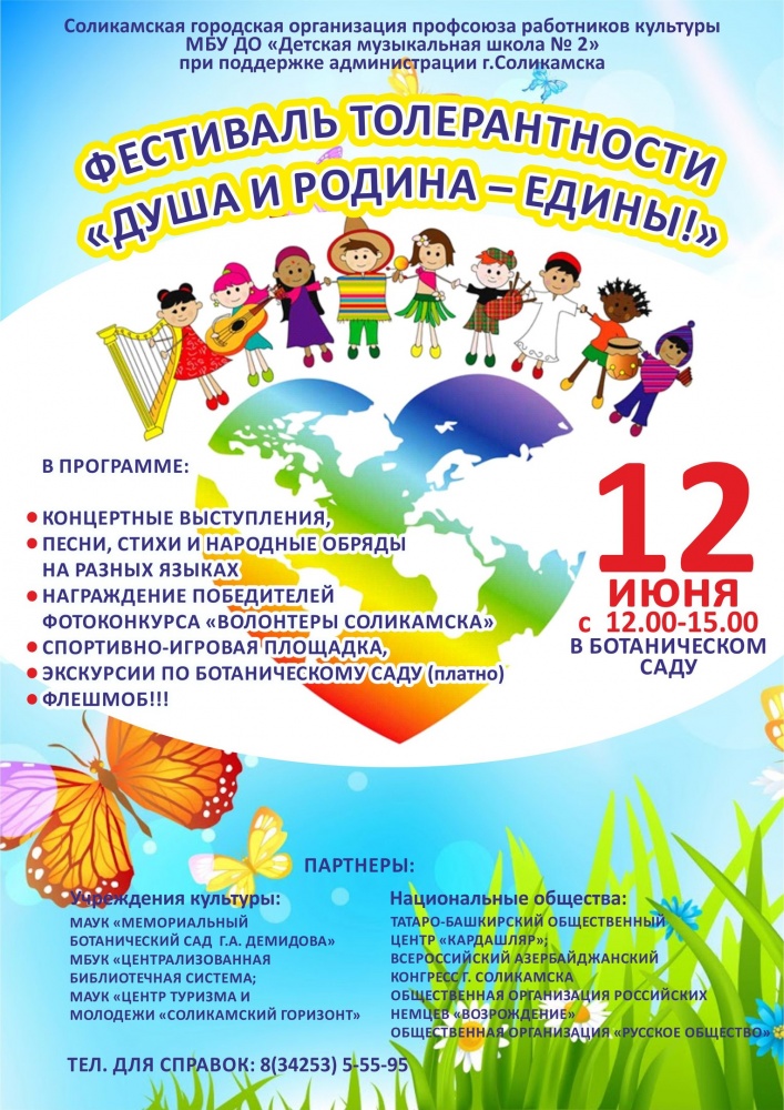 12 июня на территории Ботанического сада пройдет фестиваль толерантности «Душа и Родина — едины!».