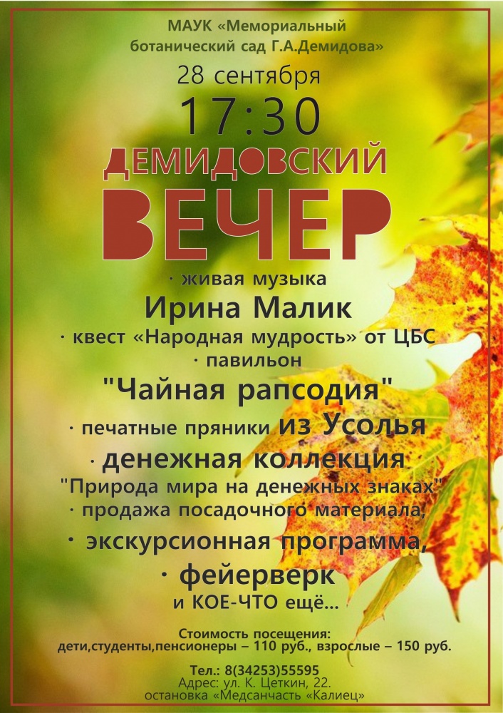 28 сентября в Соликамском ботаническом саду пройдет «Демидовский вечер».