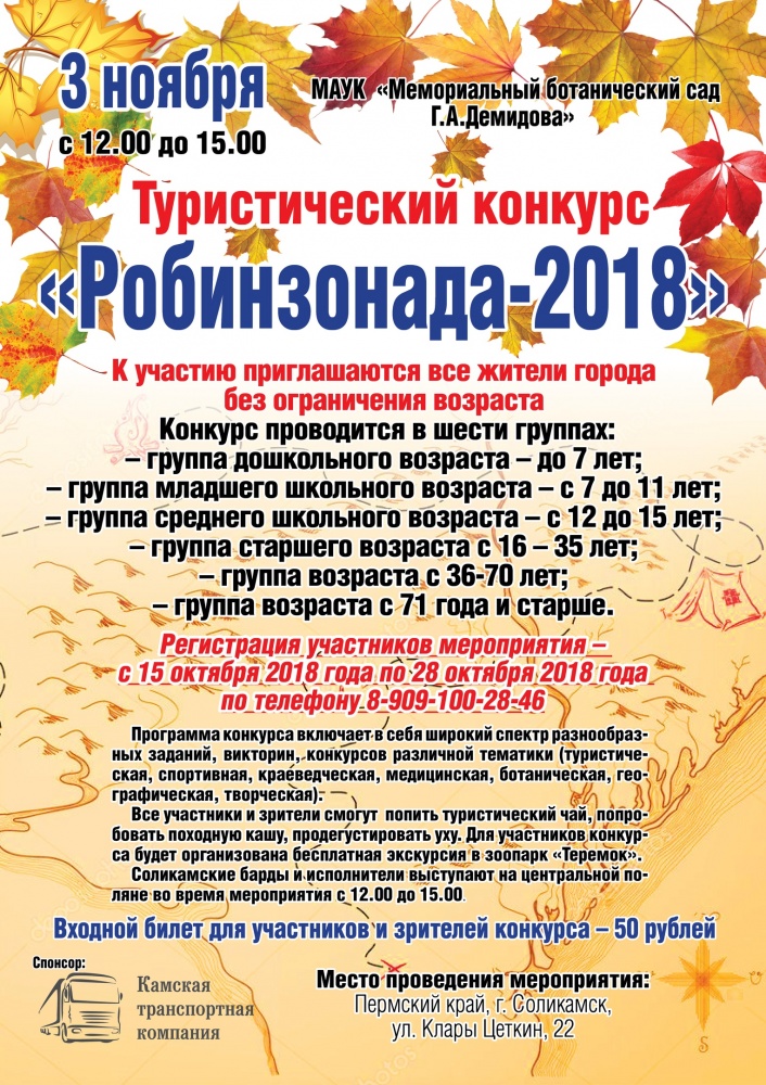Все участники и зрители смогут попить туристический чай, попробовать походную кашу, продегустировать уху. Для участников конкурса будет организована бесплатная экскурсия в зоопарк «Теремок».