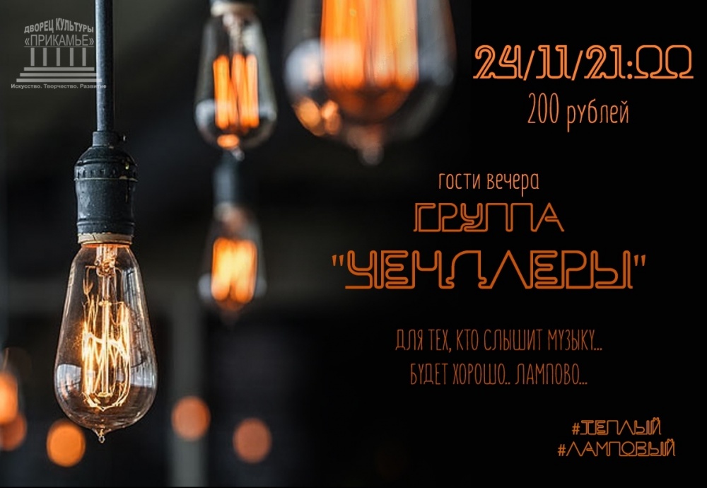 24 ноября в ДК Прикамье гостями первого ЛАМПОВОГО вечера станет группа ЧЕНДЛЕРЫ.