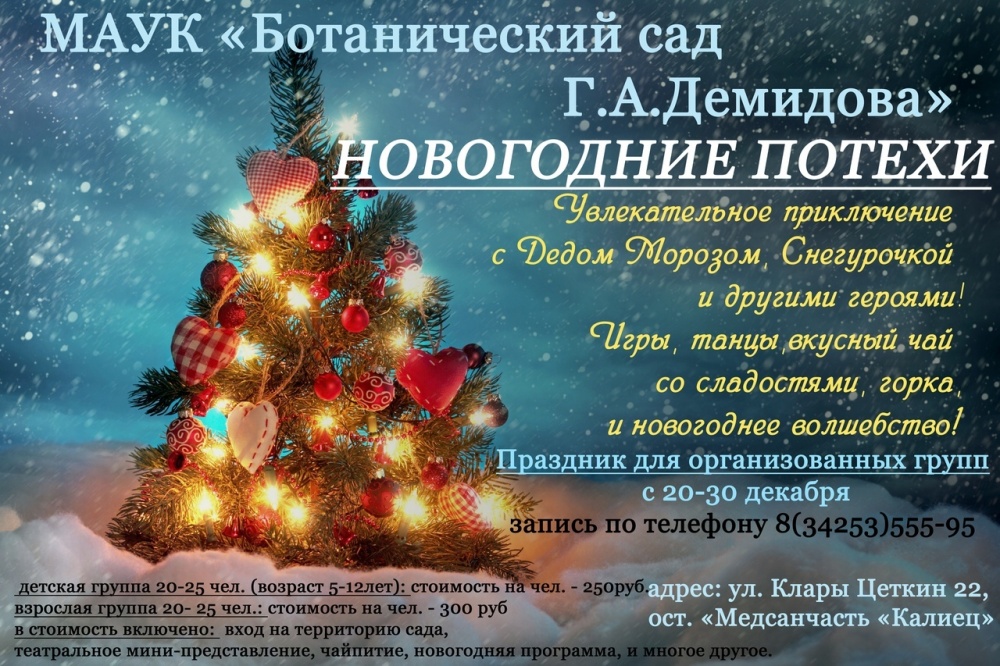 С 20 по 30 декабря 2018 на территории Ботанического сада проводятся «Новогодние потехи» — праздник для организованных групп.
