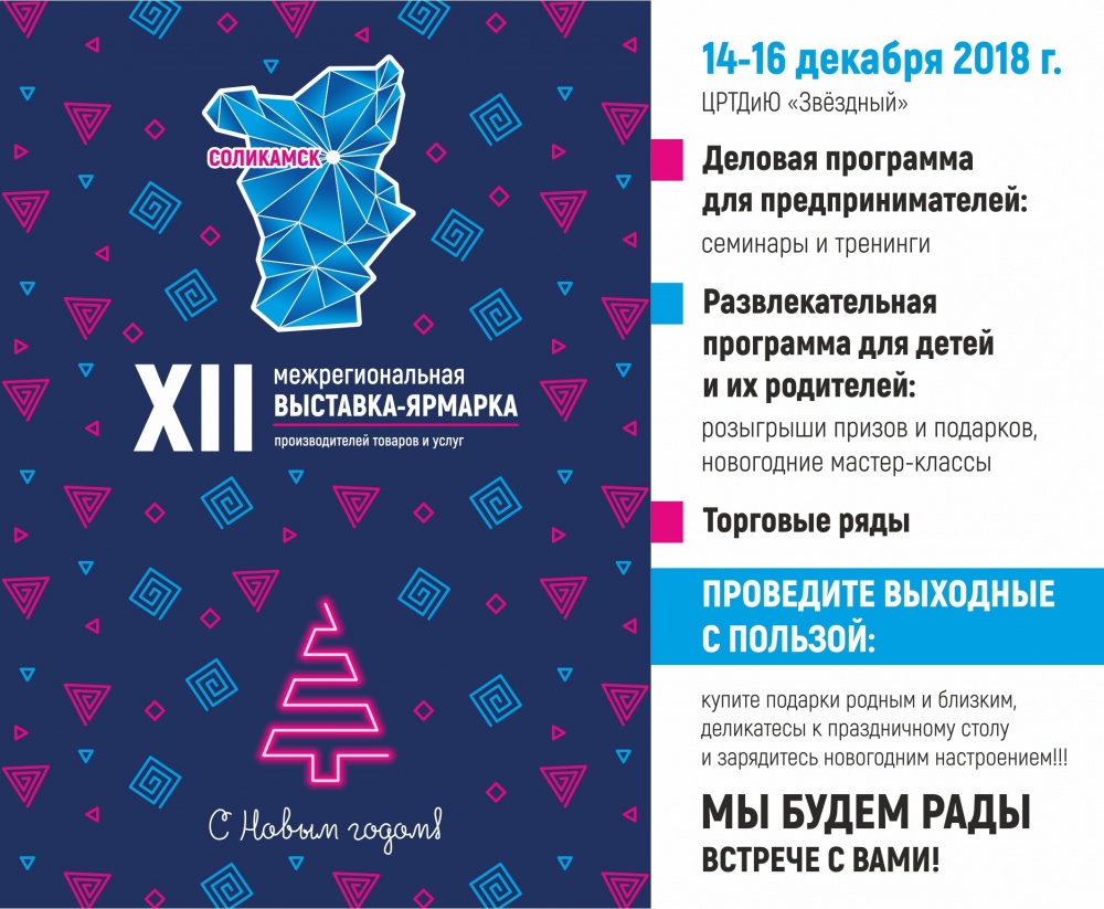С 14 по 16 декабря 2018 в ЦРТДиЮ «Звездный» пройдет 12 Межрегиональная выставка-ярмарка производителей товаров и услуг!