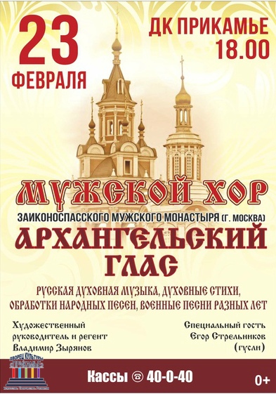 23 февраля в ДК Прикамье пройдет выступление мужского хора Заиконоспасского мужского монастыря (Москва) «Архангельский глас».