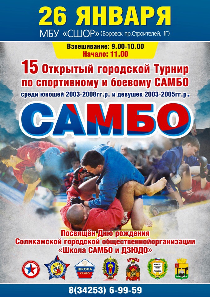 26 января в Соликамске пройдет 15 открытый городской турнир по спортивному и боевому САМБО.