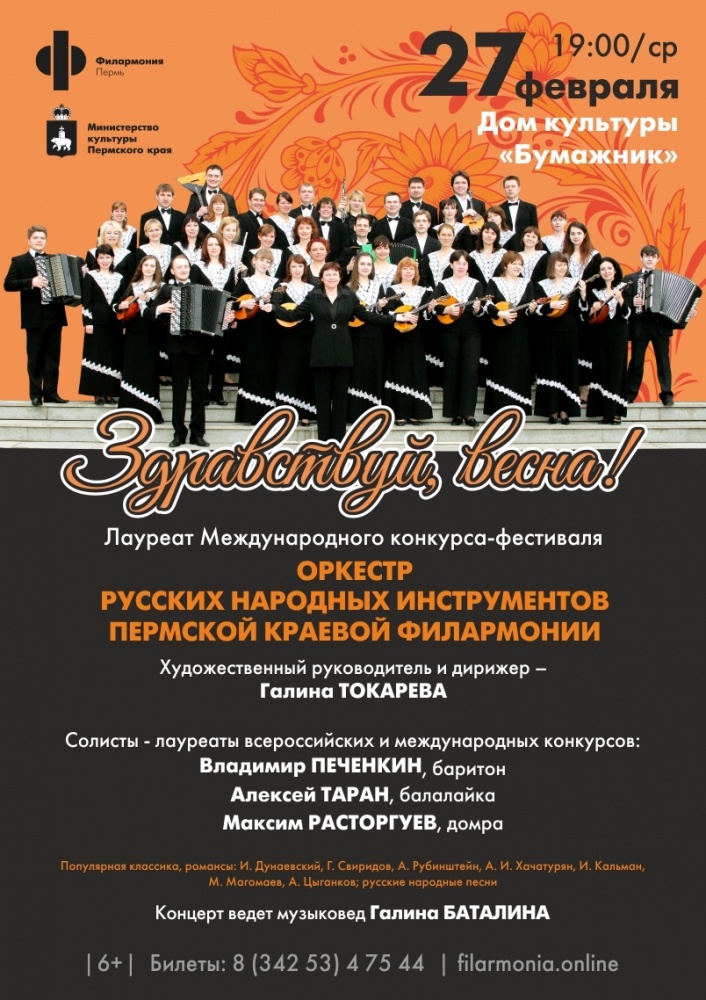 27 февраля 2019 (среда) в 19:00 в ДК Бумажник пройдет концерт «Здравствуй, весна!»