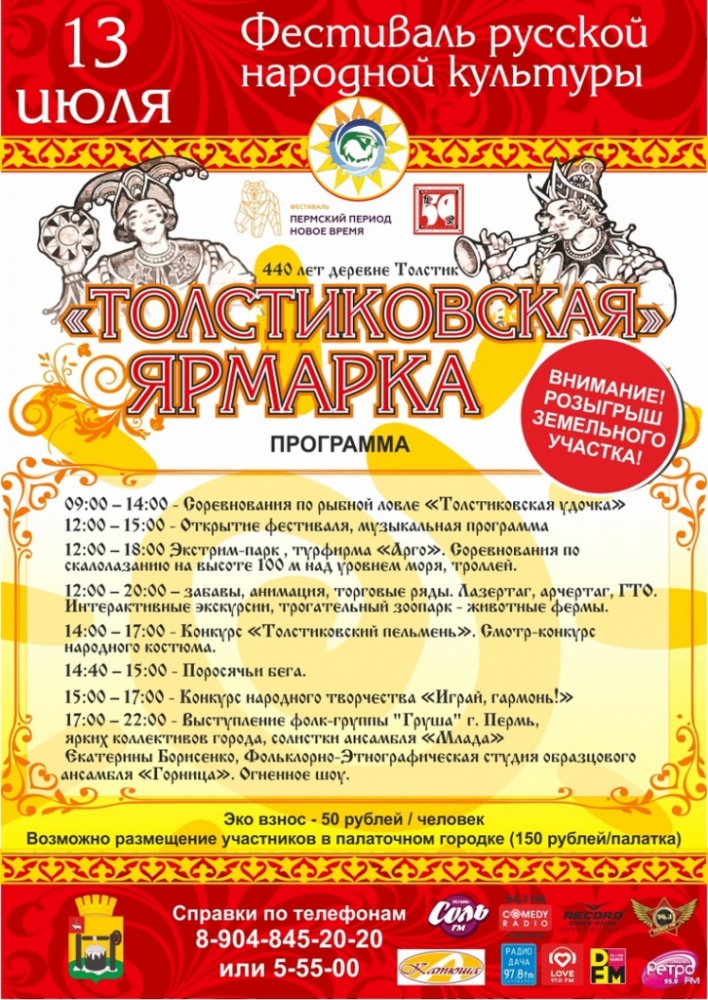 13 июля 2019 года в д. Толстик Соликамского района состоится VI фестиваль русской народной культуры «Толстиковская ярмарка».