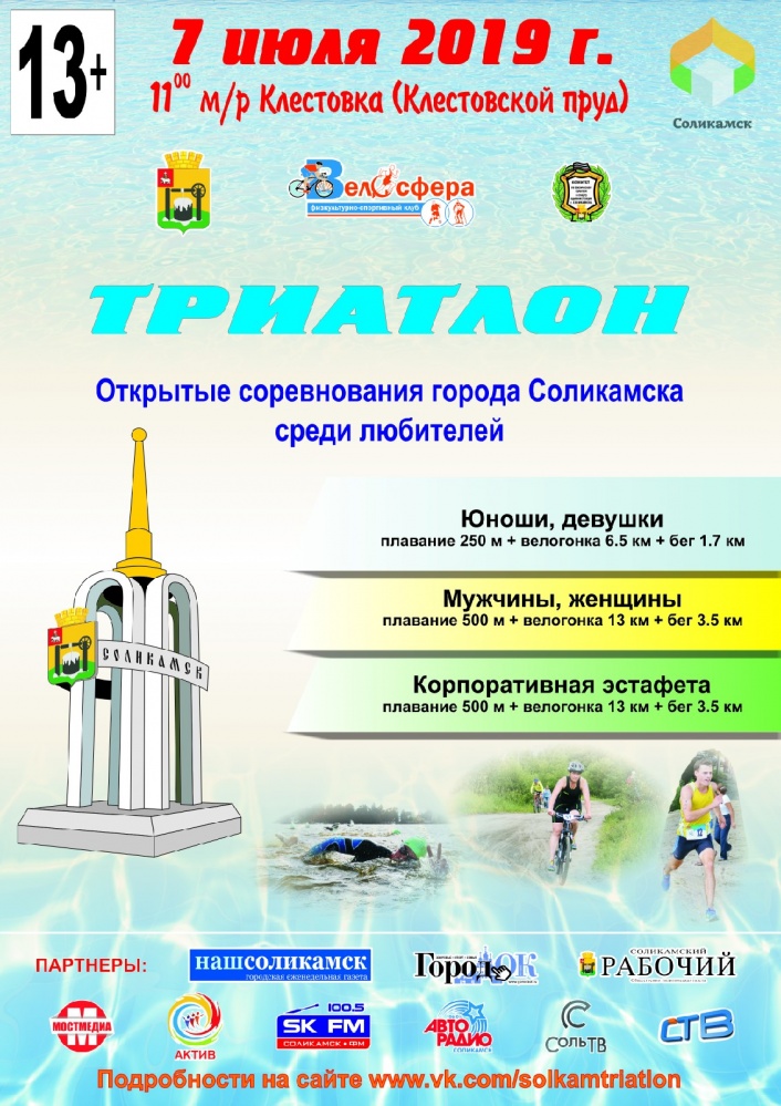 7 июля 2019 в Соликамске пройдут открытые соревнования города Соликамска среди любителей по триатлону.