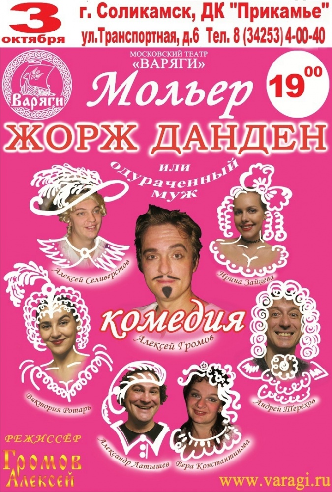 3 октября в ДК Прикамье Московский театр «Варяги» представит комедию «Жан-Батист Мольер. Жорж Данден или Одураченный муж».