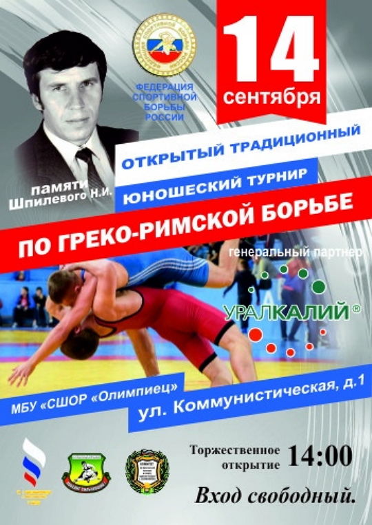 14 — 15 сентября 2019 года в спортивном зале МБУ «СШОР «Олимпиец», расположенном по адресу: Пермский край, г. Соликамск, ул. Коммунистическая, 1, состоится Открытый традиционный турнир по греко-римской борьбе памяти Н.И. Шпилевого.
