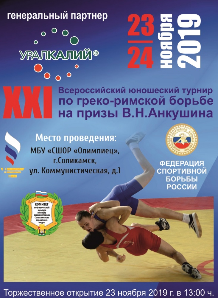 23 и 24 ноября в МБУ «СШОР „Олимпиец“ пройдет XXI Всероссийский юношеский турнир по греко-римской борьбе на призы В.Н. Анкушина.