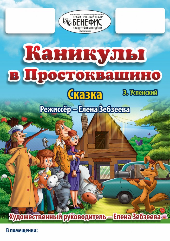 Театр «Бенефис» представляет Вашему вниманию замечательную историю, известную миллионам детей и родителей, настоящую сказку родом из детства – «Каникулы в Простоквашино», которую актеры театра сыграют на сцене. Забавные встречи с Матроскиным, Шариком, Почтальоном Печкиным и Дядей Федором подарят смех и радость, заряд энергии и веселья!